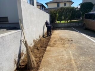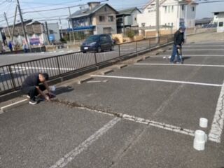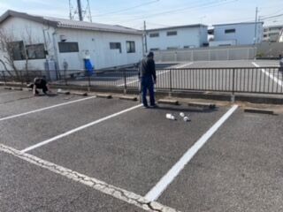 管理テナントの白線の引き直し、駐車場の砂利敷きをしました。