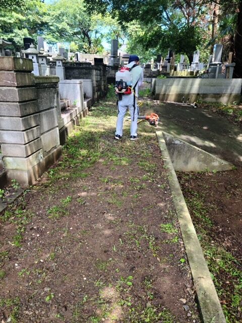 高齢の方が1人で墓掃除している最中に転んでしまって、動けなくなってしまったが助けを呼べなかったなんていう話もあったようなので、墓掃除は必ず複数名で行くのをお勧めしています。